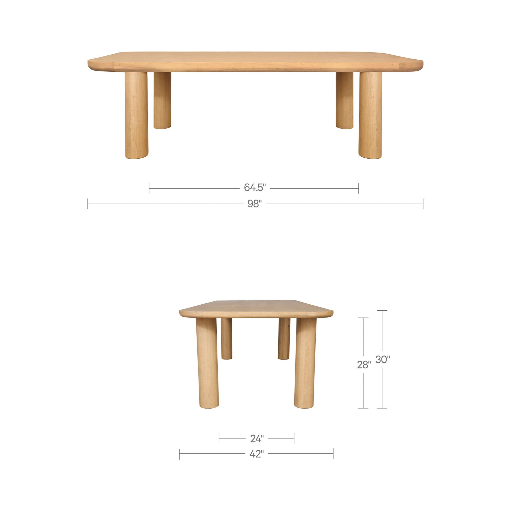 Crafted from FSC-certified oak, the Anders dining table's expansive surface comfortably seats eight, while a half-bullnose edge softens the minimalist silhouette. Four sleek column legs provide a stable foundation, echoing the table's commitment to simplicity. The natural finish celebrates oak's inherent beauty, with unique grain patterns ensuring each piece tells its own story.