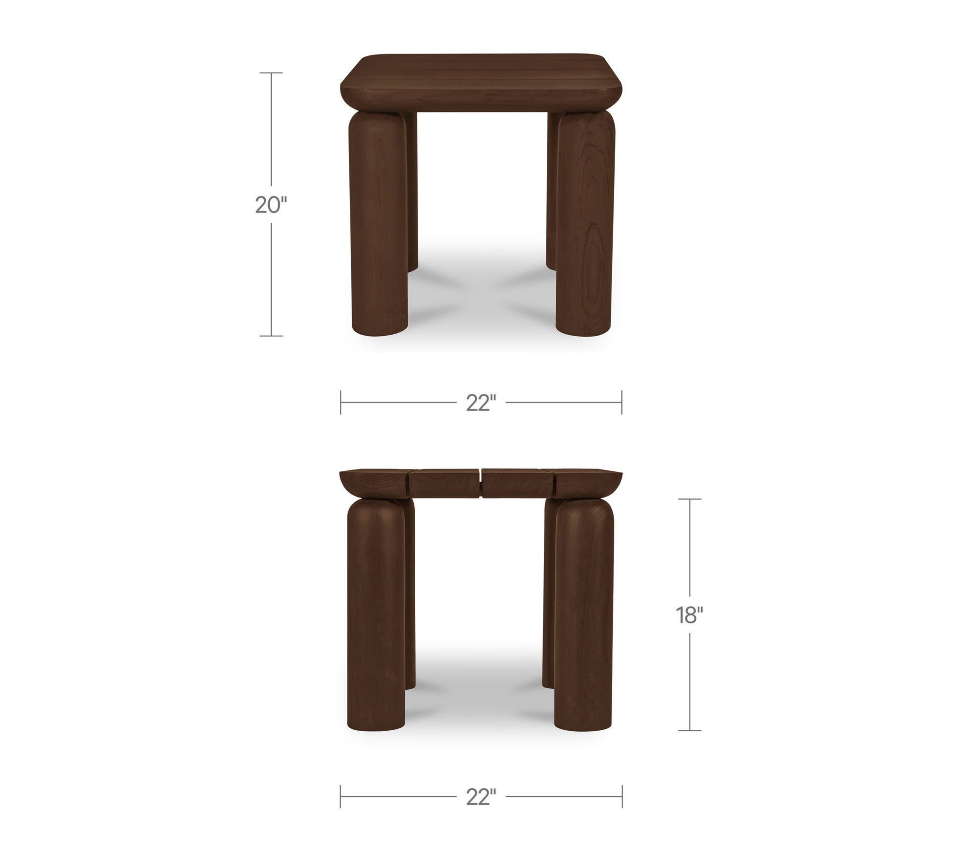 - Solid teak with a toasted brown finish