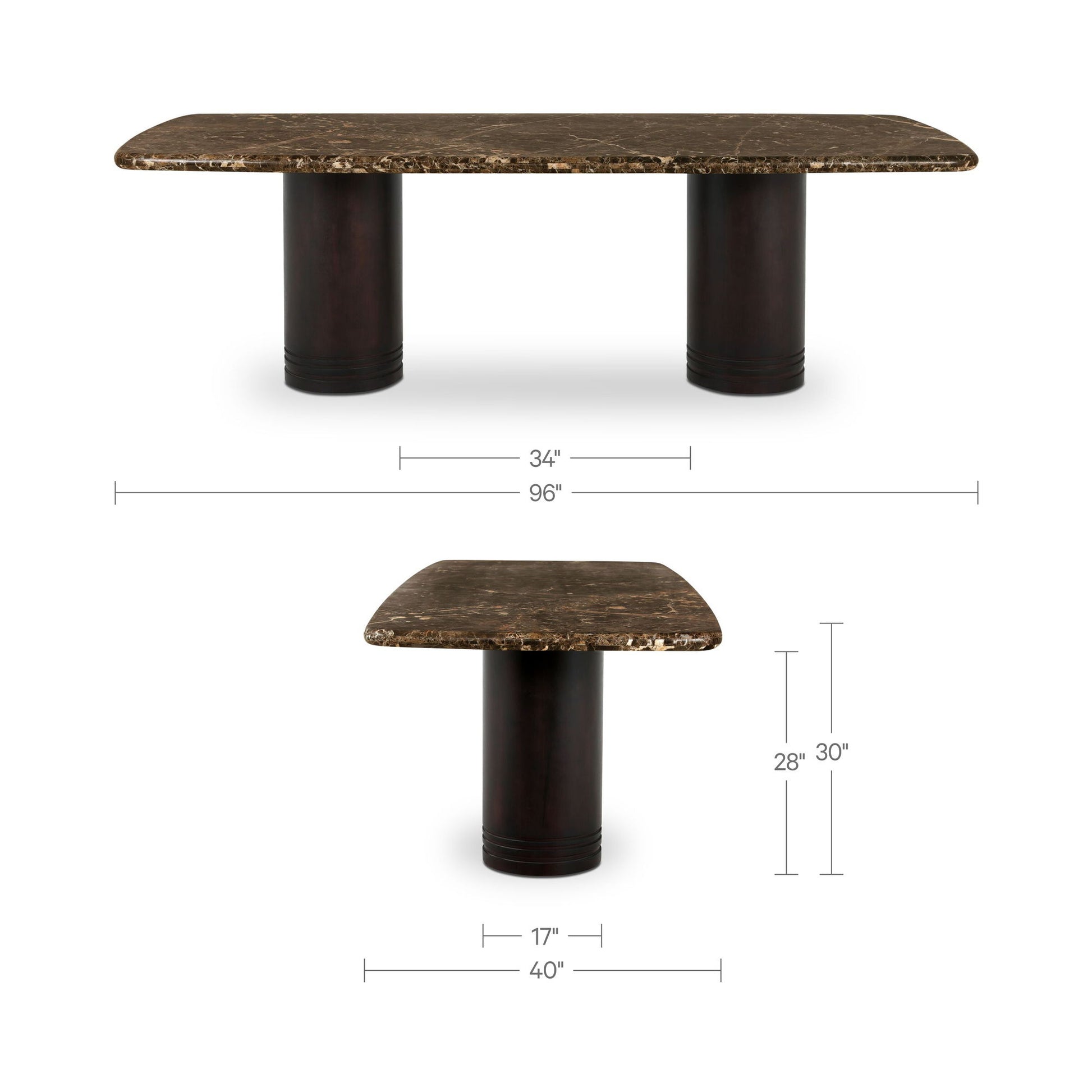 - Emperador Marble Top: Italian Dark Emperador marble brings rich brown tone and natural veining, giving every place setting a grounded, one-of-a-kind backdrop at meals.