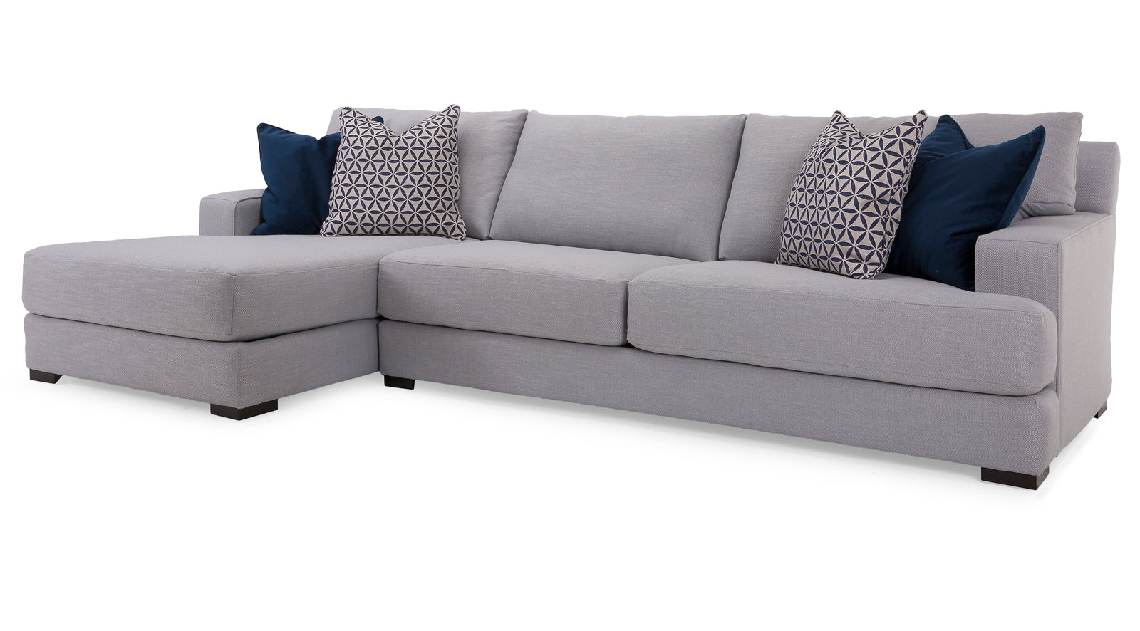 Sectional with its clean modern lines, extra-large pillows, low profile and wide arms is a designerβs dream.Β Sink into its premium high-resiliency 2lb super soft foam core and feel the difference of quality Canadian workmanship.