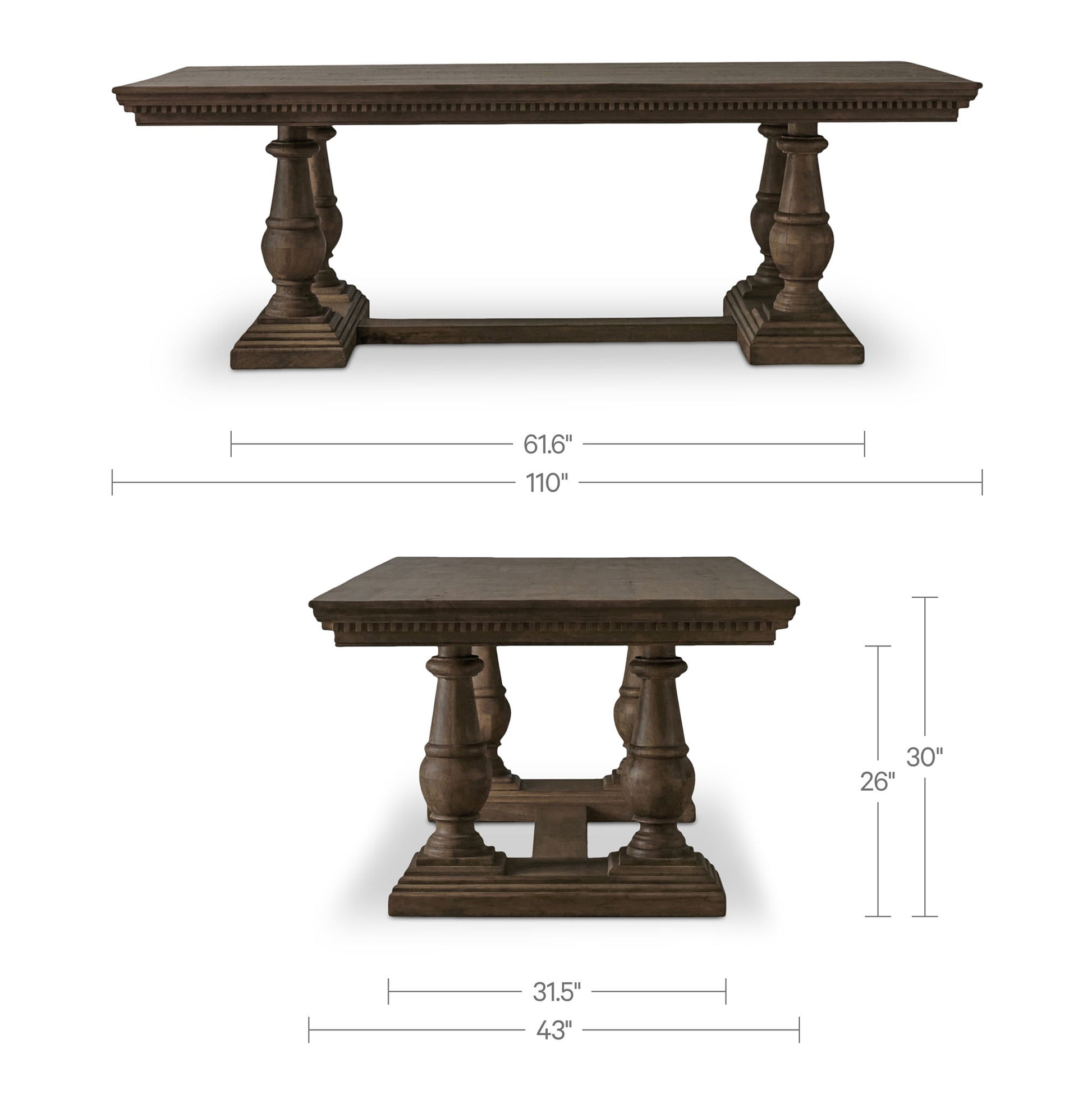 Crafted from sustainably sourced mango wood, the Everson dining table's rich brown hue showcases intricate molding and classic leg profiles with a stretcher in between. Comfortably seating 8 to 10, this generous centerpiece invites memorable gatherings as every element is an invitation to come together.