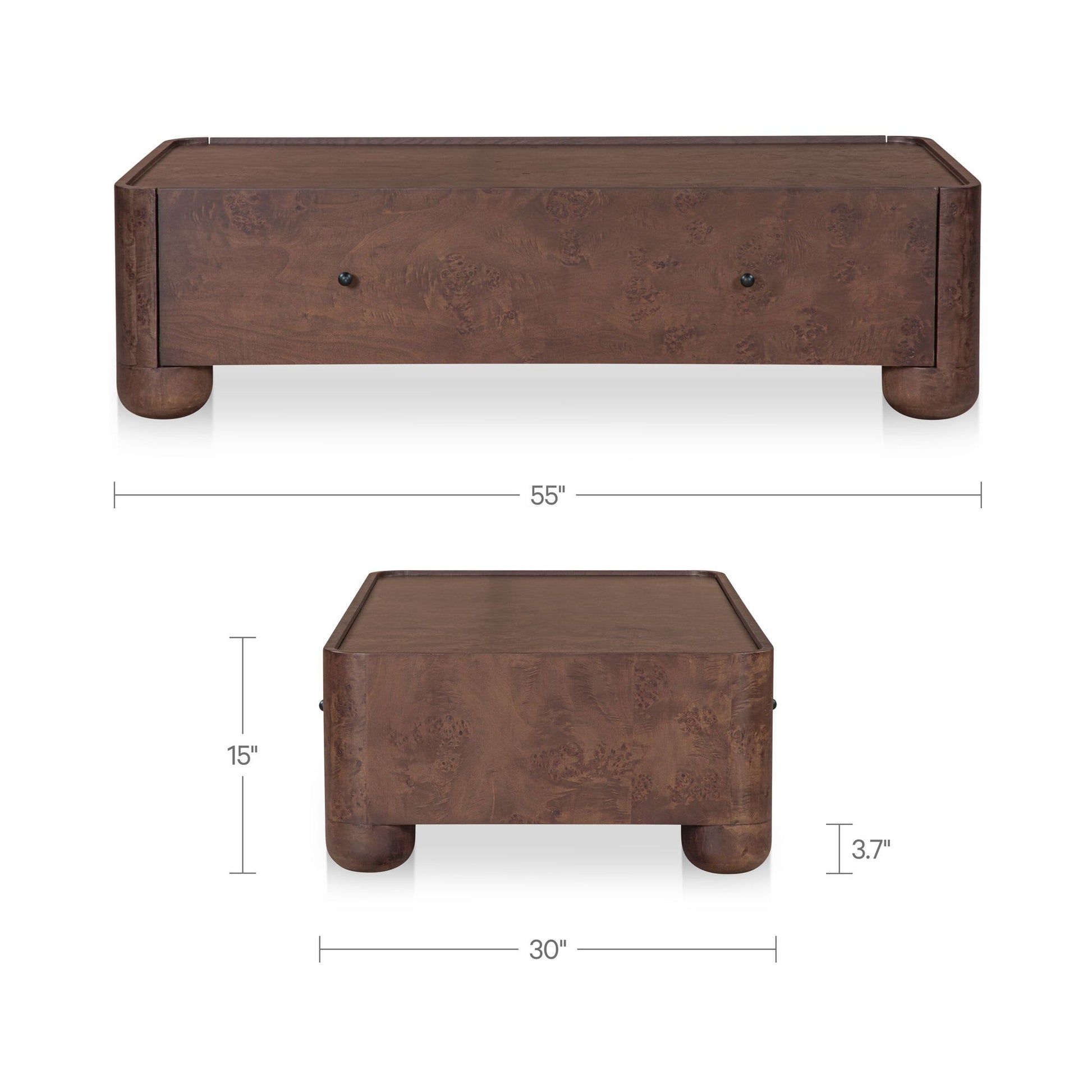 - Burl Meets Oak: MDF panels wrapped in burl veneer keep the surface consistent, while solid oak legs and frame add natural warmth and stability.