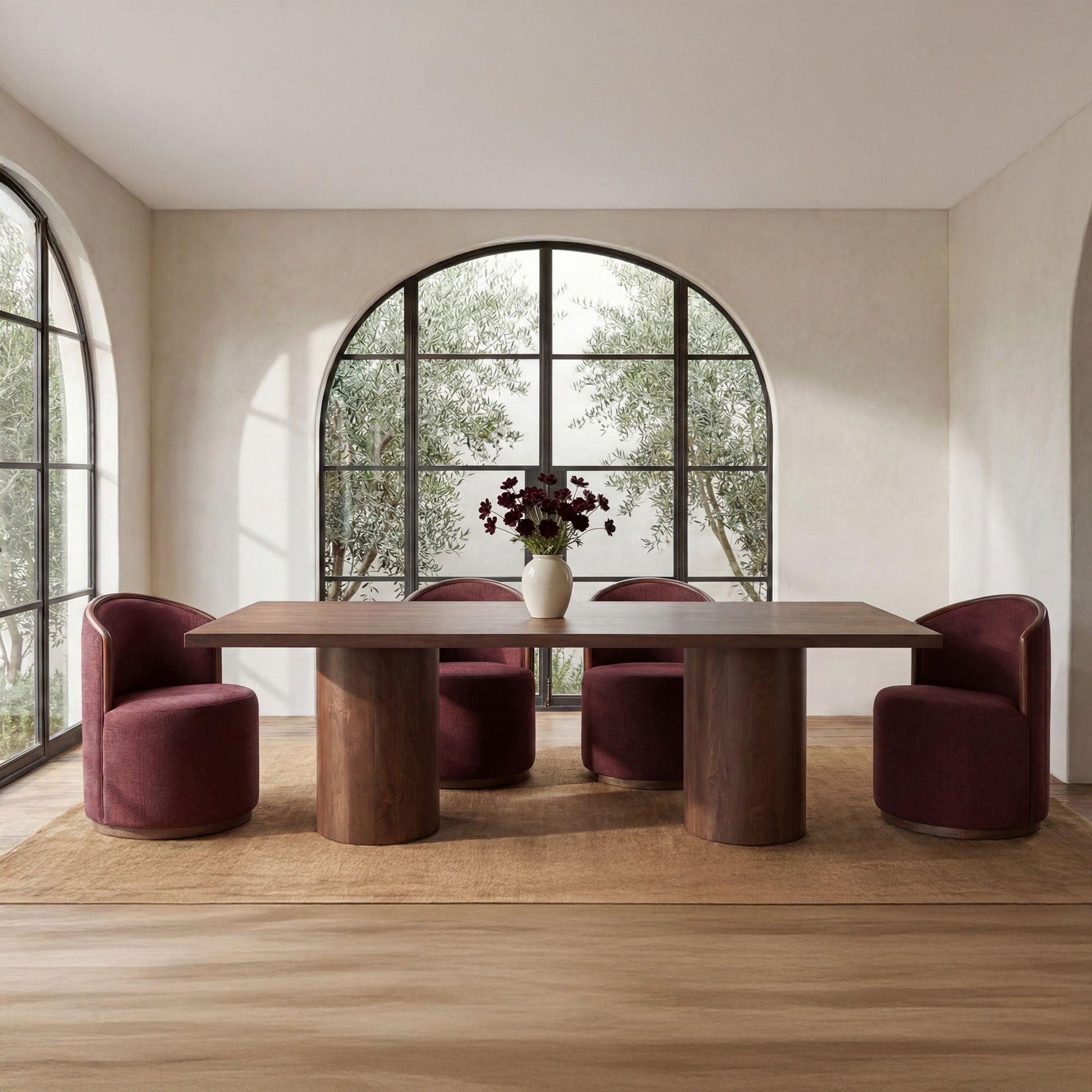 - Grounded Profile: Rectangular top and cylindrical bases create a calm, architectural stance that reads modern, but never cold, in dining spaces today.