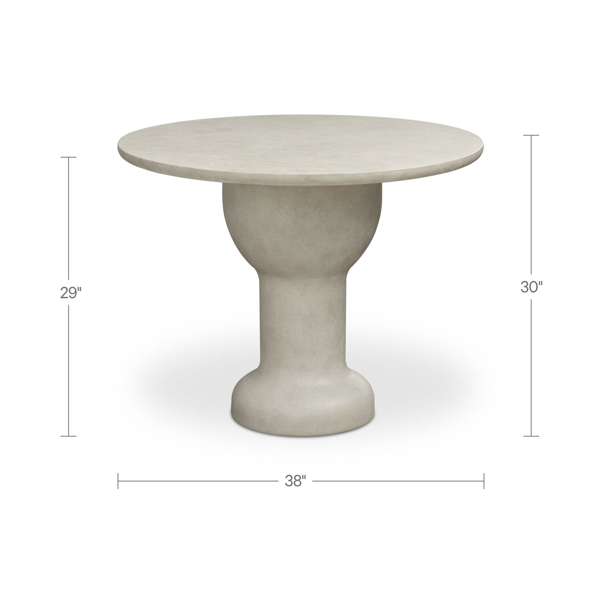 - Pedestal silhouette: A cylindrical base supports a tapered tabletop edge, creating a sculptural shape that feels both stable and design-forward in any setting.