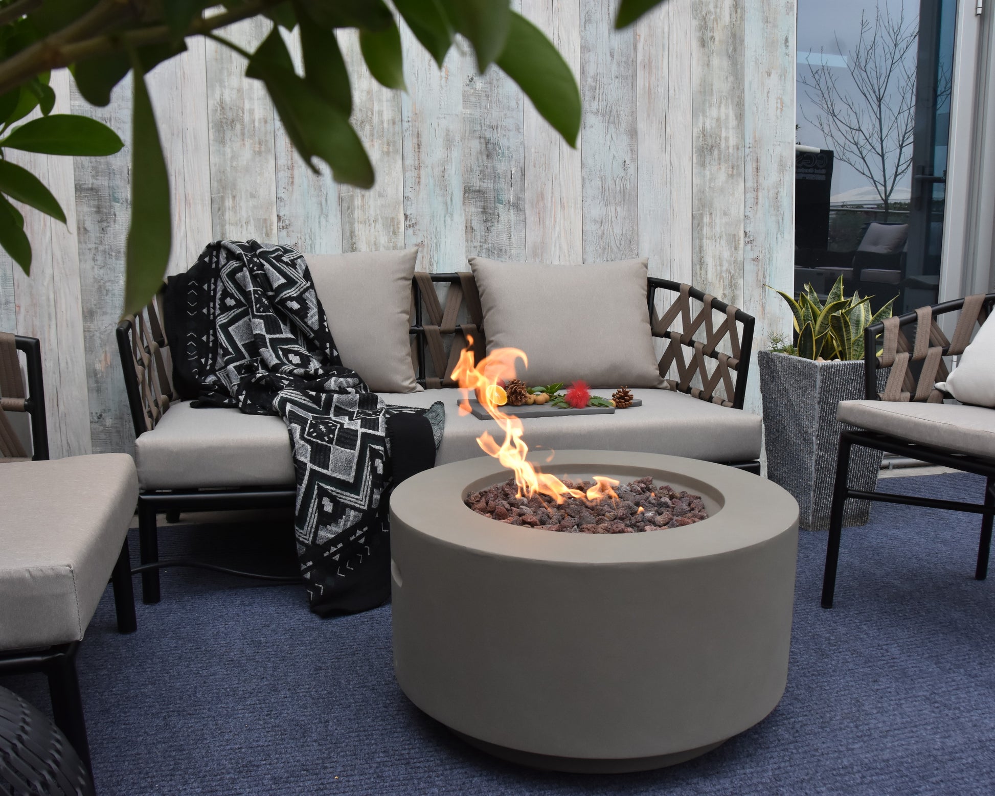 The Modeno Waterford fire table creates a dramatic focal point and cozy gathering place for any outdoor living space. The 26.8"L x 26.8"W x 14.2"H round table features a glass-fiber reinforced concrete smooth finish in light gray. With 40,000 BTUs of heat, and a push button ignition, it is the perfect addition to any outdoor space. Offered in a choice of two fuel types – liquid propane or natural gas. This table can also be converted with the approved conversion kit (sold separately). Standard included accessories: