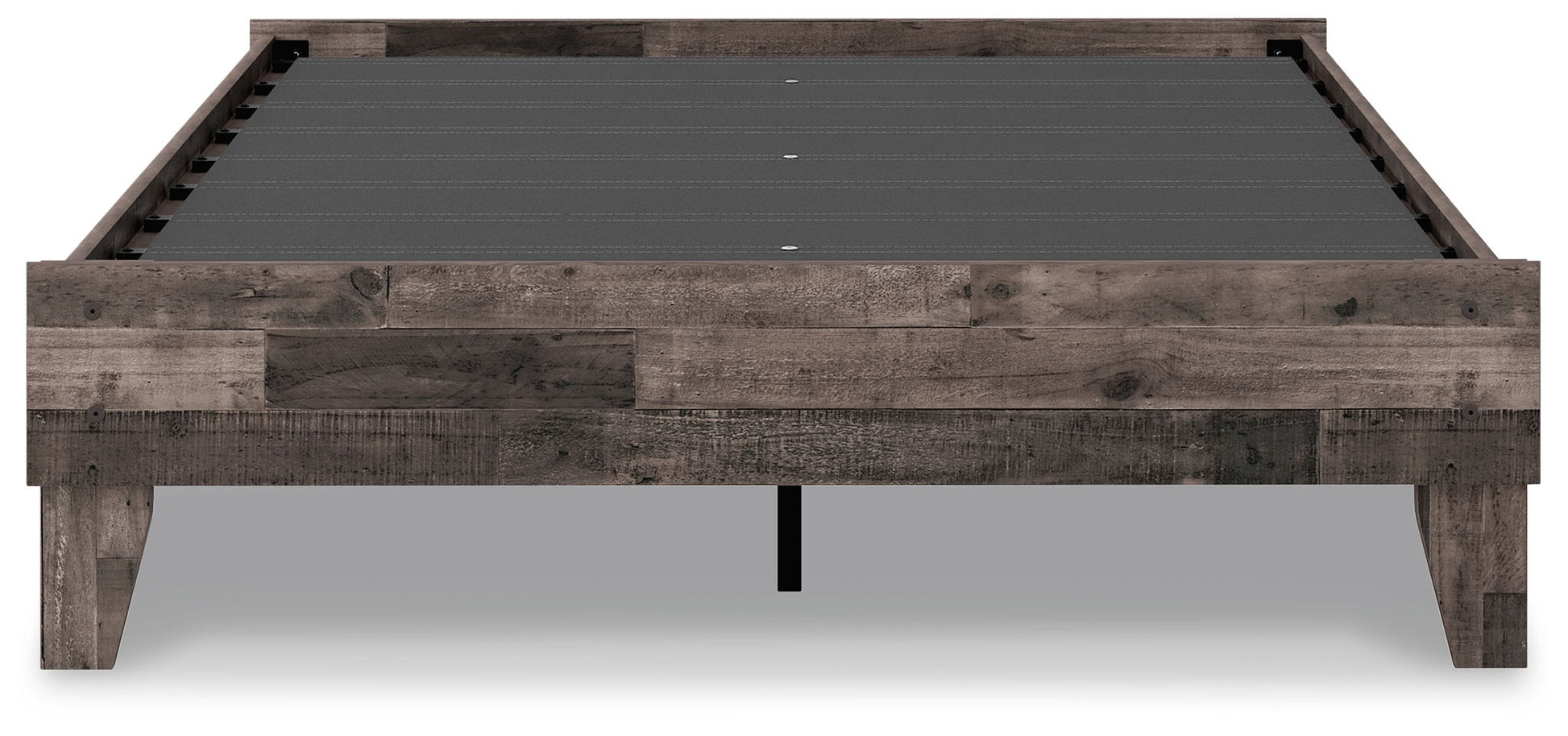 Streamlined design and a stunning two-tone finish come together in one simply extraordinary bed. This queen panel bed is sure to impress with platform styling and a rich brown finish over replicated pine grain texture. Its mid-century profile is a nod to the past, while the updated finish keeps it solidly in the present.