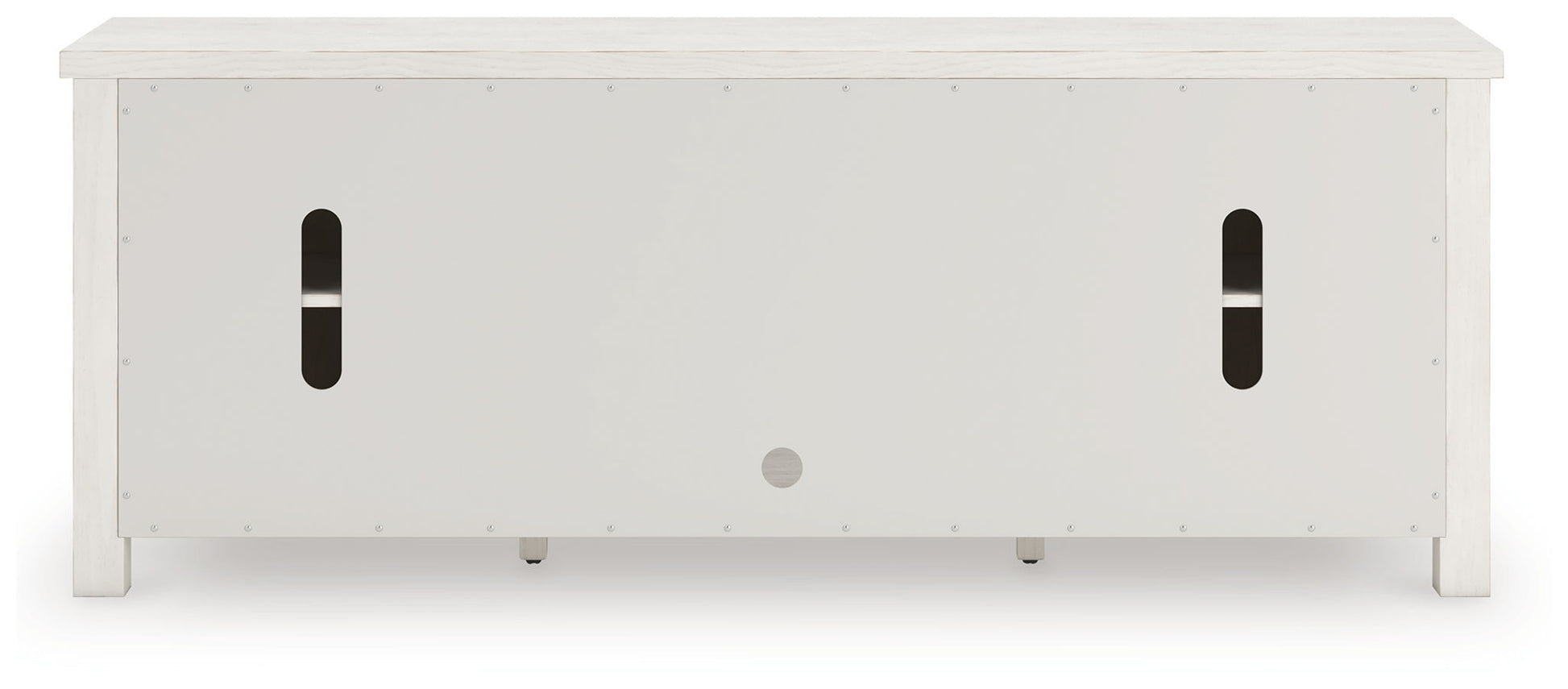 This TV stand is sure to impress when it’s time to relax after a tough day. With an antiqued white finish and wood grain texture, modern farmhouse-style design has never been so fashionable. Its cabinets and adjustable shelves are ideal for keeping all your equipment well organized and displaying your treasures. And that storage drawer is perfect for smaller accessories, bringing even more function to your entertainment space. All that’s missing is you.