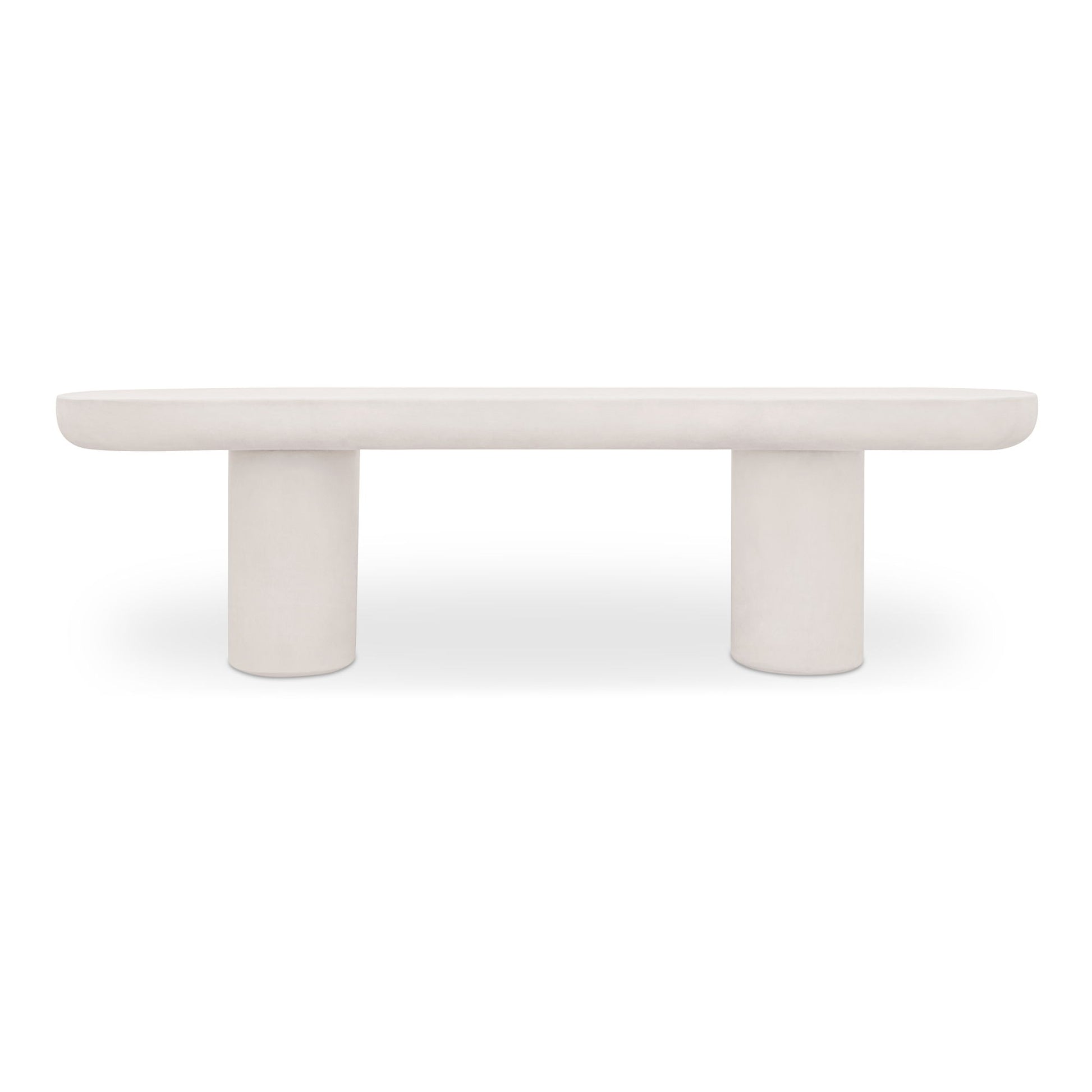 Made from fiber-reinforced natural concrete with a cream finish and set in a sturdy iron frame, the Rocca indoor/outdoor collection's elemental design places material and forms center stage. Featuring a monolithic contemporary look, this bench’s supportive pillars and slab seat serve for both drama and comfort. Perfect for pairing with plants and accent pieces, combine this table with other pieces from the Rocca collection for the full effect. Please read through the care instructions below to fully enjoy the beauty of this collection for years to come.