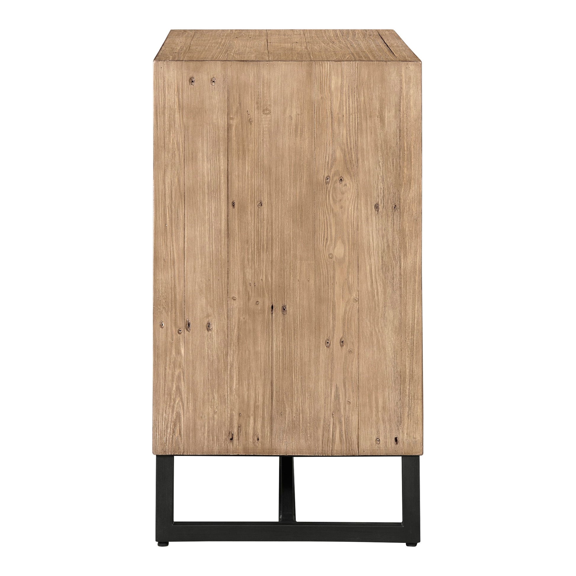 Made with solid reclaimed pine, the Sierra 2 door cabinet exhibits natural woodgrain and knot variances. Its single adjustable pine wood shelf provides ample space while a solid metal base & finished back give this 2 door cabinet its transitional design.